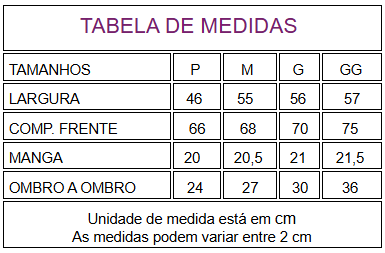Tamanhos: P ao GG
